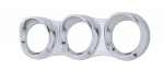 Peterbilt 06+ triple horizontal gauge cluster.  Sold as each.  Chrome plastic.  Snap on application.  Import.  Note:  2011+ requires a dab of clear silicone to keep the piece firmly in place.