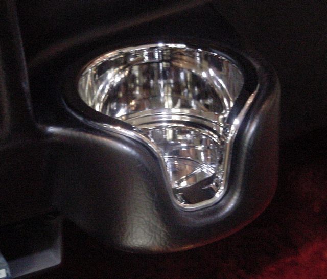 Peterbilt 01-05 Cupholder insert. Replacement. Factory piece pops out and chrome piece pops in. Chrome plastic. Made in the USA. Rockwood Products.