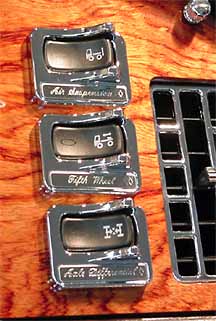 Peterbilt 01-05 guarded switch covers. Cover. Adhesive application. Chrome plastic with engraved stainless label. Made in the USA. Rockwood Products.