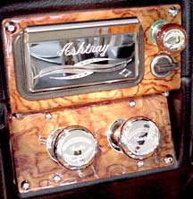 Peterbilt 01-05 Rosewood ashtray/parkbrake trim. Replacement. Includes 2 chrome screws for ashtray and 4 chrome screws for above and below the parkbrake area. Made in the USA by Rockwood Products. 6 dash panel size screws, which hold piece in place are sold separately.