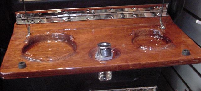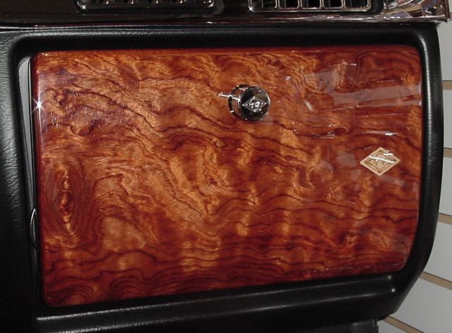 Peterbilt 01-05 Rosewood glovebox door. Complete replacement. Remove factory door by detaching the guide lines and piano hinge and attach new door. Solid rosewood. Includes new knob-style latch. Chrome knob trim sold separately. Made in the USA by Rockwood Products.