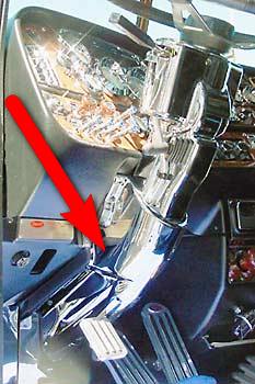 Peterbilt 379 Lower steering column trim. Cover, goes over the top of the factory piece. If the factory piece is missing, this piece will not fit properly. Fits 1998-2005 American Class Interior. Chrome plastic. Made in the USA by Cab Fresh.