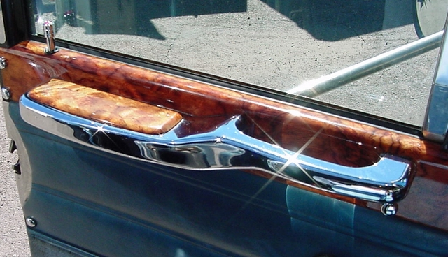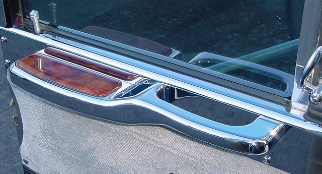 PB 87-05 Door handle. Chromed billet aluminum with genuine African rosewood pad. Smooth grip. Chrome mounting screws included. Sold as a pair. Mounts to door sill. YES YOU CAN, mount an "old-style" handle to a newer truck. Use with chrome door sills, (part RKWPDW351-C), or rosewood sills (part RKWPDW013). Made in the USA by Rockwood Products. See 2nd image for door sill options.