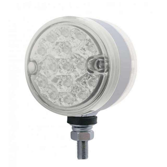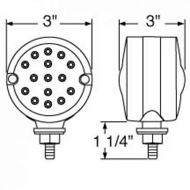15 Led, double face, 3" auxiliary reflector light.  3 wire, dual function.  Available in Amber/Red with colored lens, or amber/red with clear lens.  Please see drop down list for purchase.  Sold as each.  Import.