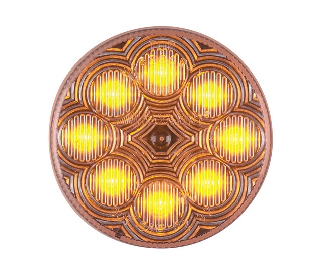 2.5" Flat led with CLEAR LENS, shines red or amber, grommet mount, std 2 prong plug, 8 leds.