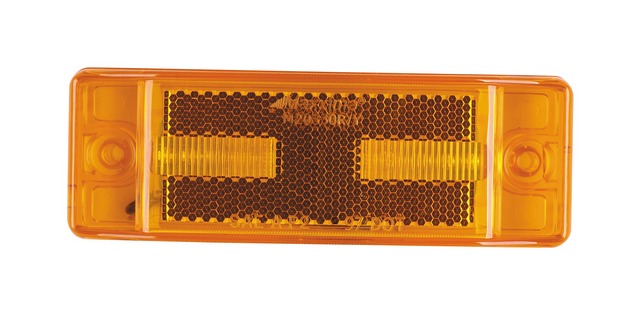 2" X 6" Reflectorized led clearance marker. Generally used for trailers, amber or red, flush mount, bullet plug, 8 leds.