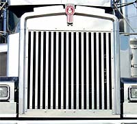 KW 900L Replacement grill with 16 vertical bars. Sold as a kit. Not complatible with grill denser. Reuses the factory wire screen. Stainless steel material. Made in the USA by Roadworks Mfg. *Note: Does not include the top/side surround pieces.