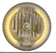 7" Round crystal headlamp replacement w/ amber LED's. 55/60w H4 halogen bulb included. Sold as each. Import.