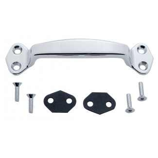 Chrome grab handle kit. Fits Peterbilt 359's as well as universal applications. Kit includes: 1 chrome handle, 2 rubber gaskets, and 4 chrome screws. Sold as a kit. Import.