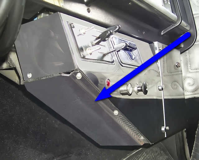 PB 359 UNDER the heater control panel facing the floor. Stainless. Made in the USA by Roadworks Mfg.