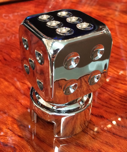 Dice gearshift knob. Chromed aluminum. Fits 13*15*18 speed Eaton/Fuller transmission. Sold as each. Import.